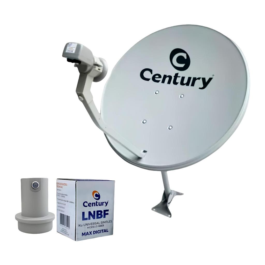 Kit Antena Century Nova Parabólica Digital Banda Ku 60cm Cinza com LNBF Mono Max Digital K5GS