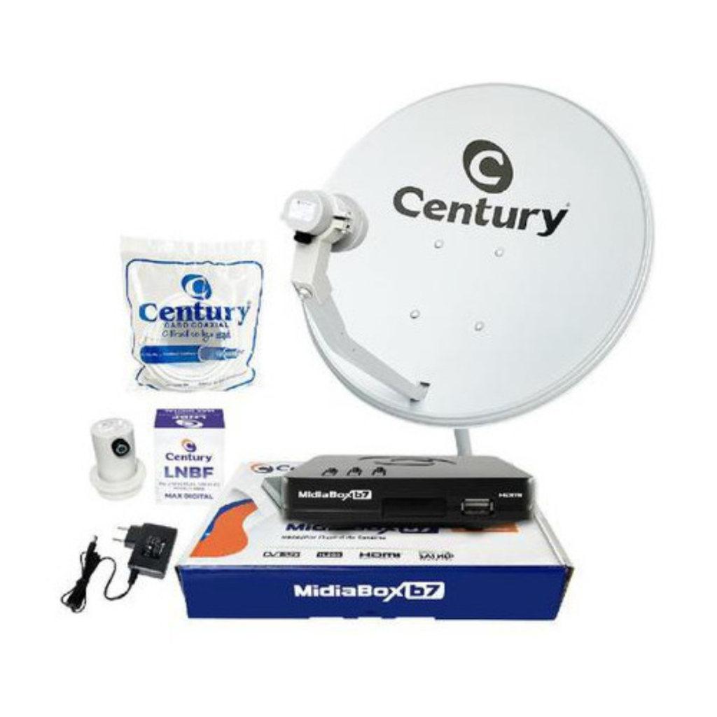 Kit Antena Parabólica Digital Banda Ku C/ Midiabox B7 5G Century LNBF E CABO