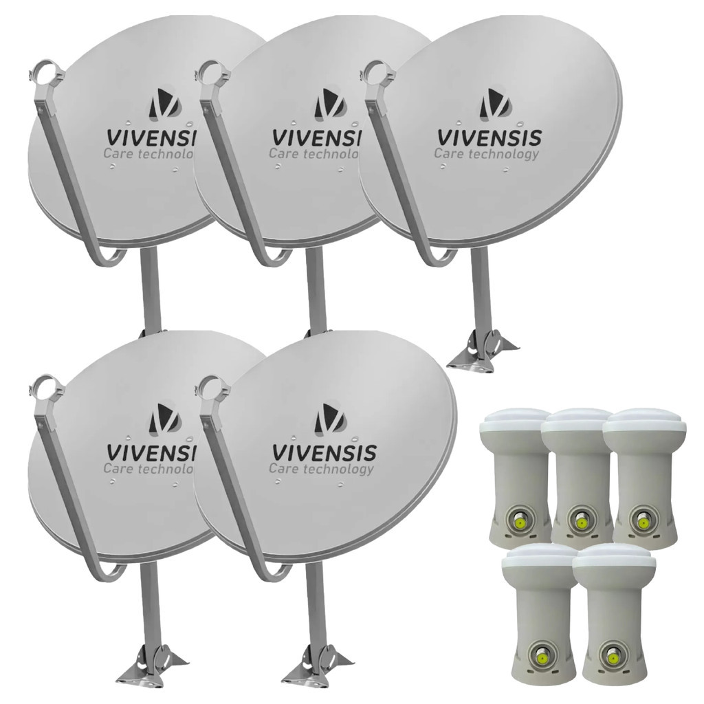 Kit 5 Antena Digital Parabólica Vivensis 60cm Ku + 5 Lnbf Ku