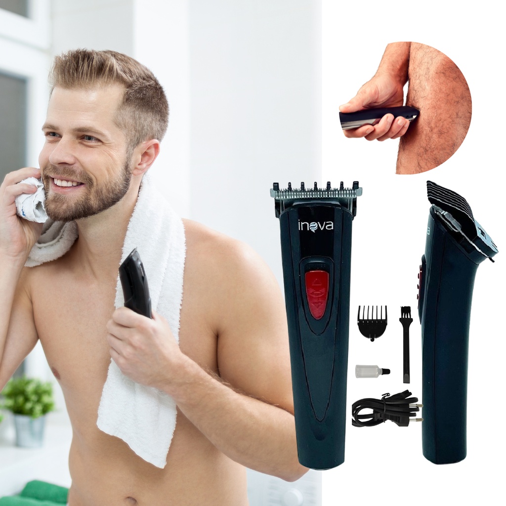 Maquininha Corta Barba Cabelo Peito Perna Pelos Pezinho Recarregável Aparador Maquina Inova