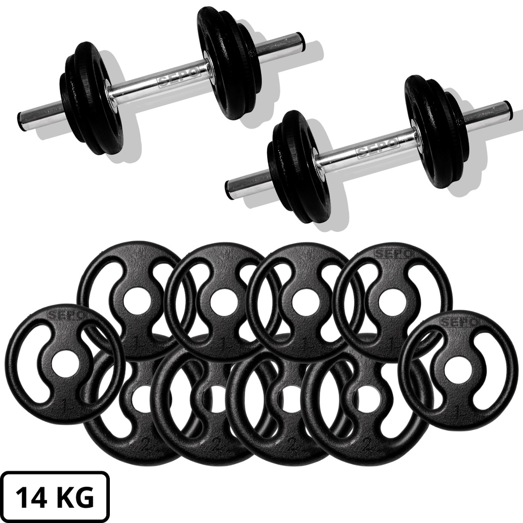 Kit Halteres de Anilhas e Barras Fitness - 16 Peças