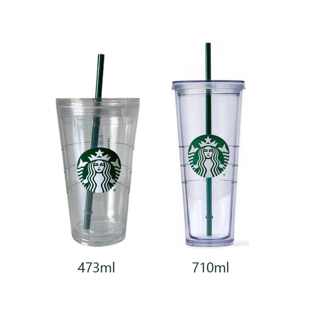 Copo De Palha 710/473ML Transparente De Dupla Camada Starbucks Plásticos De Grande Capacidade