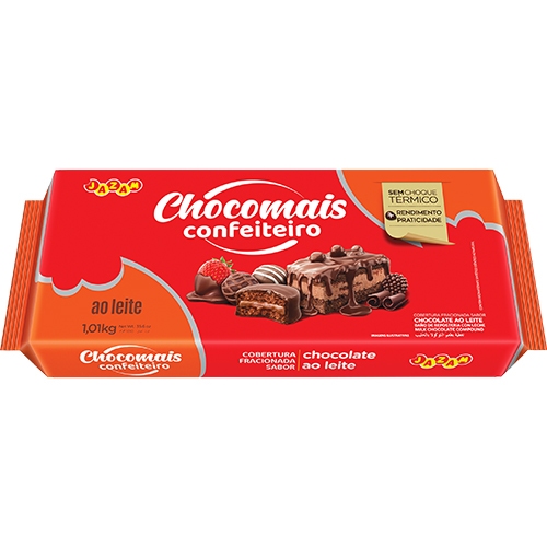 Barra de Chocolate Chocomais Ao Leite 1,01kg - Confeiteiro - Serve pra Bombons e Ovos de Pascoa - Jazam
