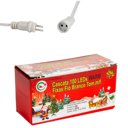 CASCATA 200 LEDS FIXA BRANCA MACHO / FÊMEA 60 CMX5 M FIO BRANCO 220V DECORAÇÃO NATAL