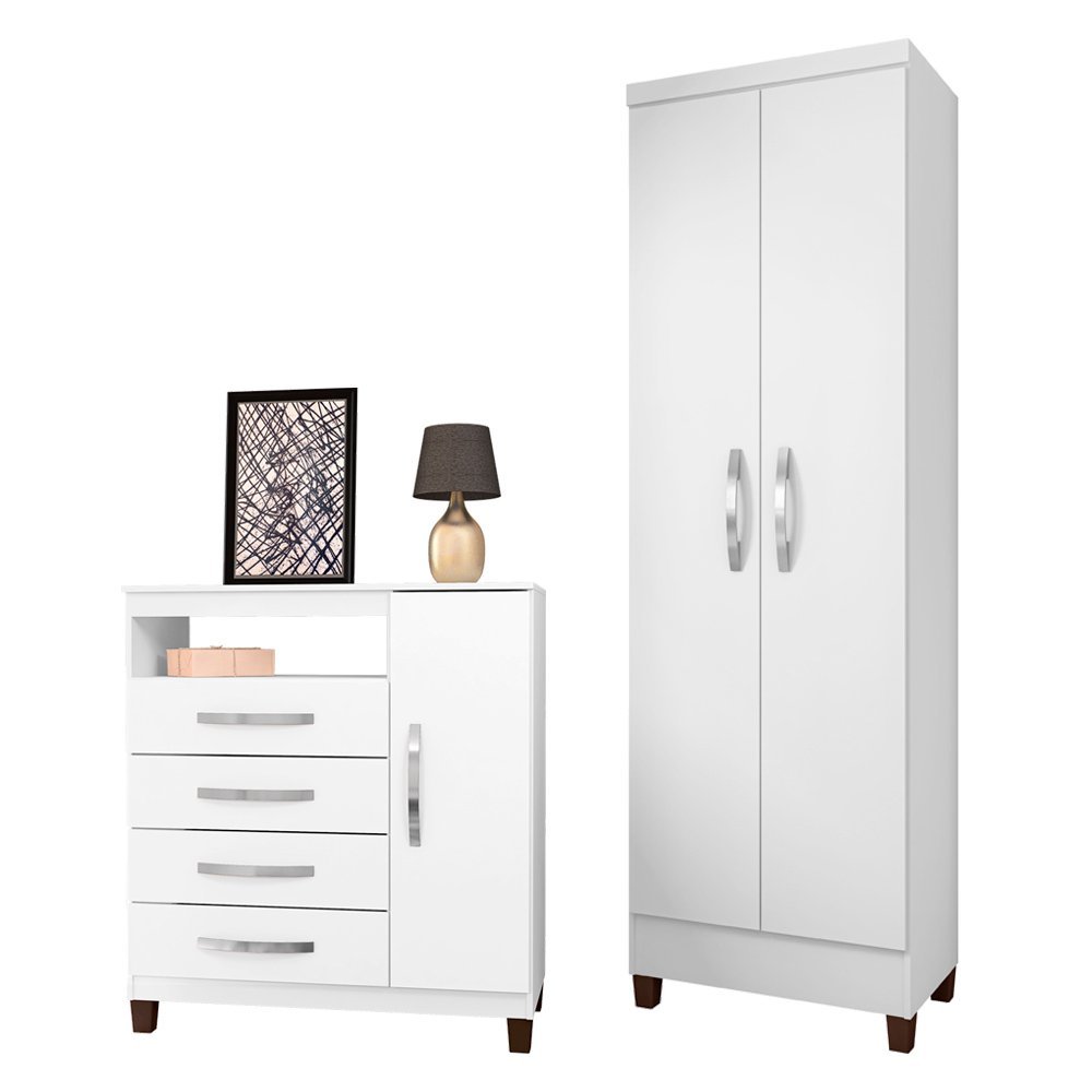 Kit Cômoda Sapateira 1 Porta 4 Gavetas Cannes Com Multiuso Egito 2 Portas Branco Incorplac 2258/2 -