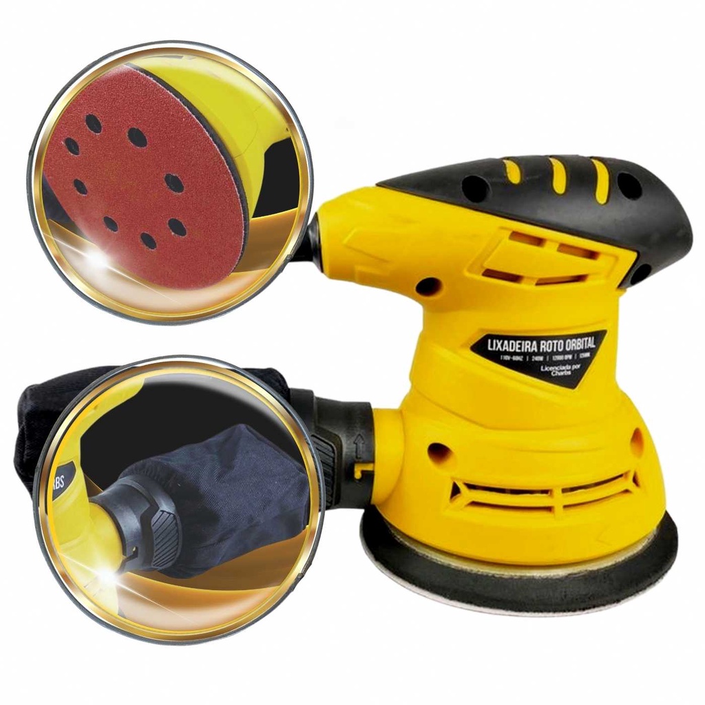 Lixadeira Elétrica Roto Orbital Profissional 300w 16 Lixas Grátis 110V ou 220V 60Hz Kit com Maleta