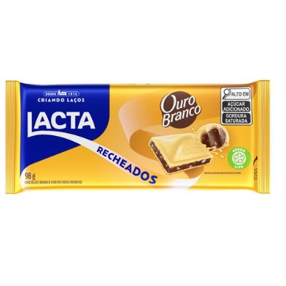Barra de chocolate ao leite com recheio cremoso de ouro branco 98g - Lacta