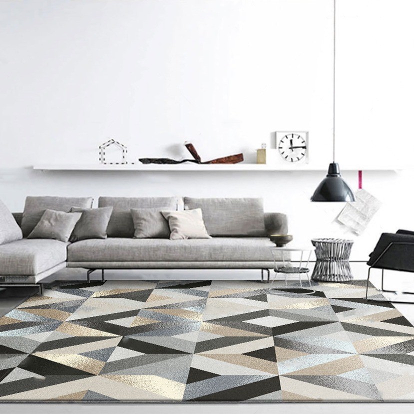 Tapete 2,00 M X 1,50 M Para Sala e Quarto Antiderrapante Quadriculado Geométrico