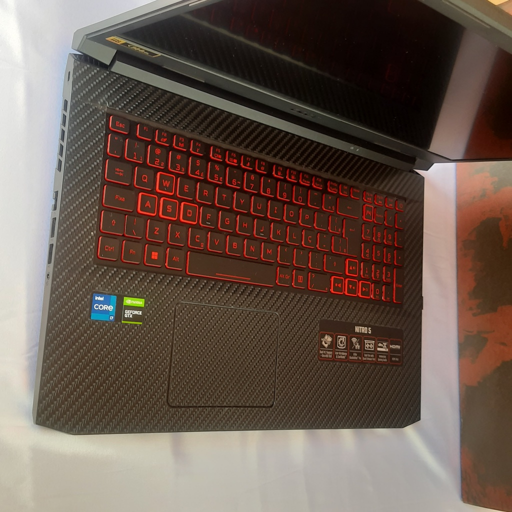 Adesivo Skin, AN517-54 e 52 Nitro 5, Pelicula para Notebook 17,3 Polegadas, Fibra de Carbono 4D.
