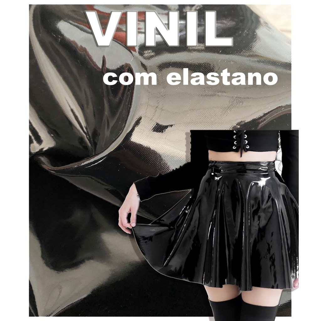 Tecido Malha VINIL - Preto BRILHANTE COM ELASTANO - Cosplay