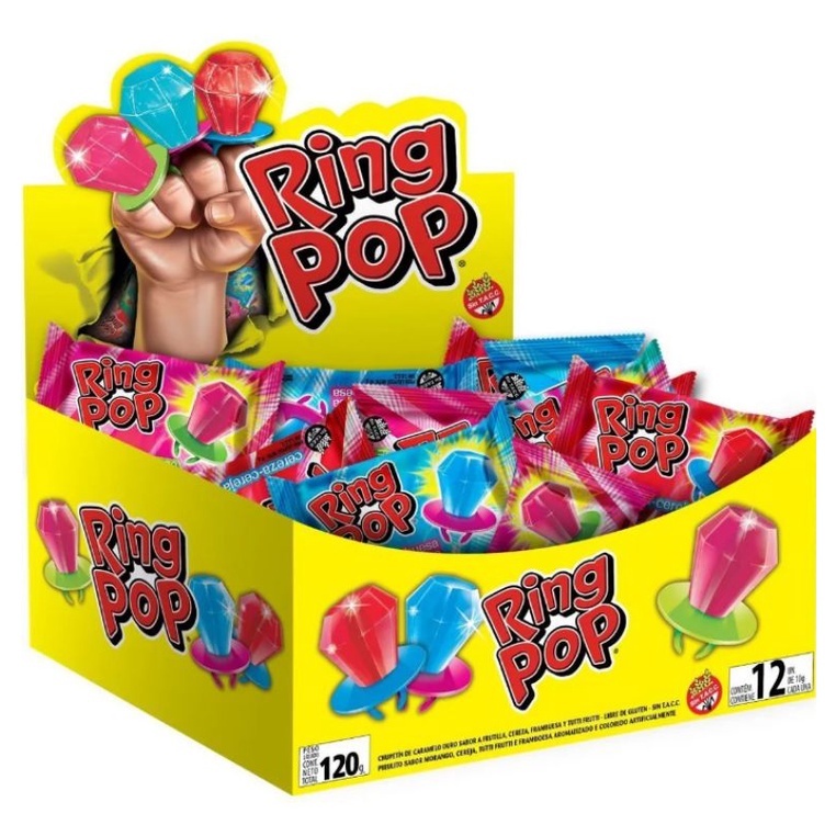 Pirulito Anel Doce Ring Pop cx C/12 Unidades 4 Sabores