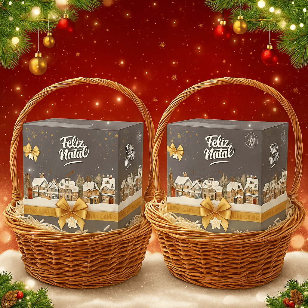 Cesta de Natal e Ano Novo Calvo Cromo + Panetone + Doces + Espumante – Presente de Fim de Ano – Kit e Vouchers Brinde