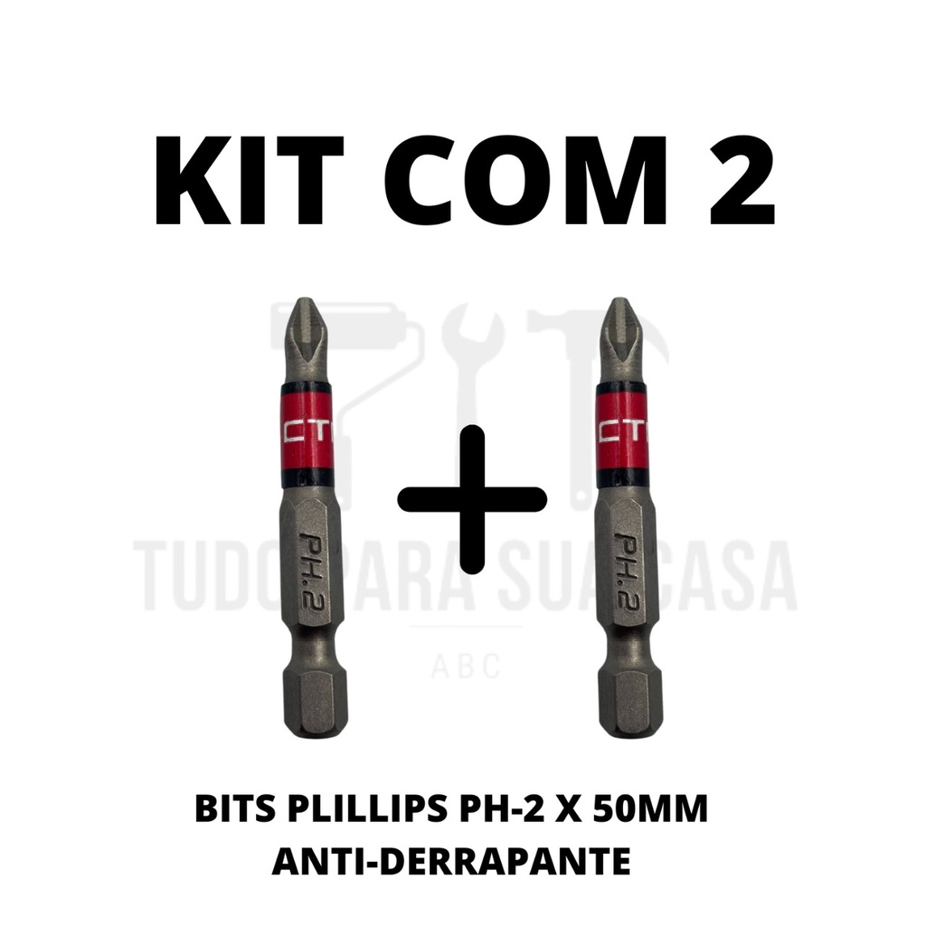 KIT COM 2 Bits Phillips PH2x50mm Ponta Antiderrapante e Magnética - Usado em qualquer marca de parafusadeira.