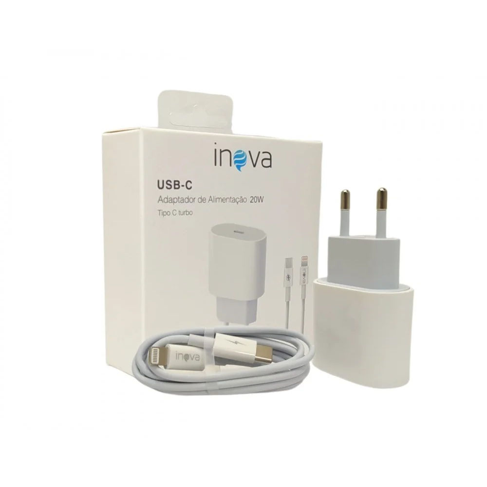Carregador Turbo 20w Para iPhone 5, 6, 7, 8, X, Xr, Xs, Xs Max, 11, 12, 13, 14 Pro Max ( Completo )