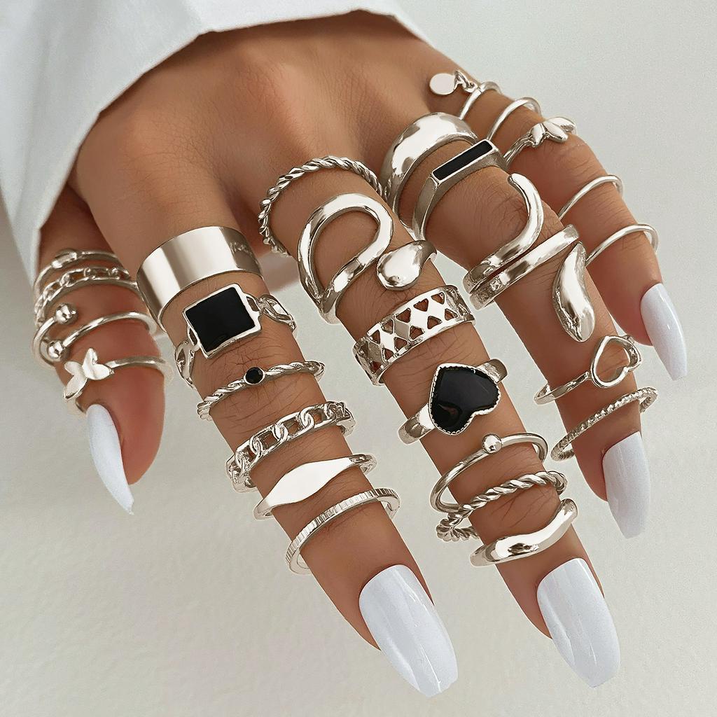 Anel Quadrado De 27 Peças Do Coração Epoxy Preto Conjunto De 27 Peças Do Coração Ladies Multi-Piece Set