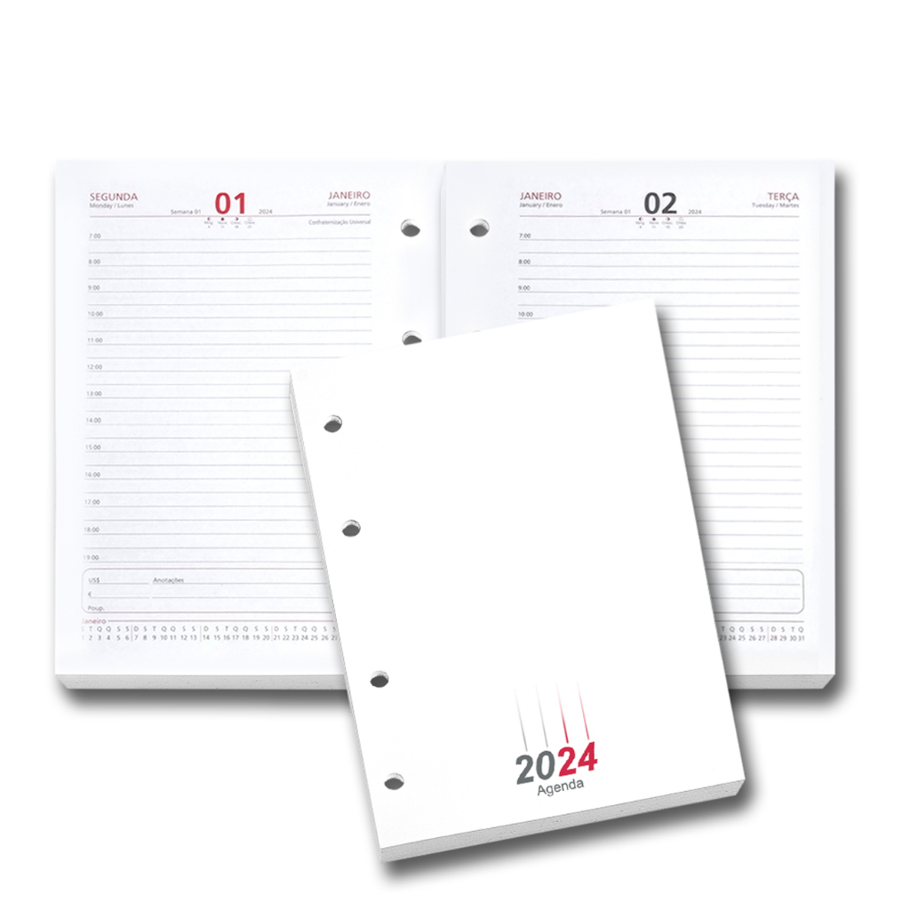 Refil A5 Para Agenda Diária 2024 De 4 Argolas