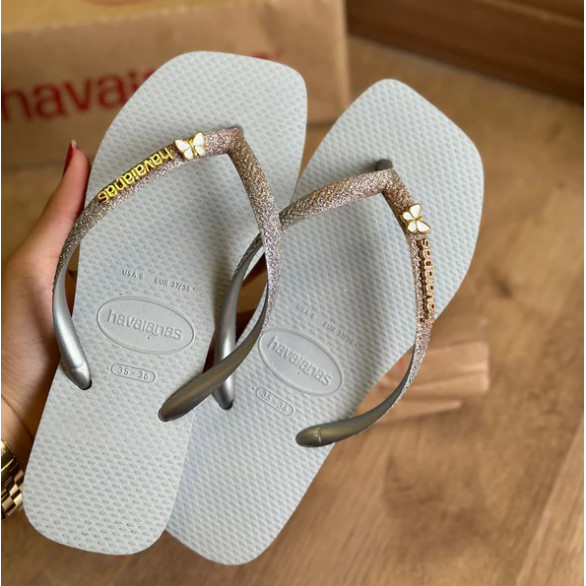 Chinelo Feminino Havaianas Slim Square Glitter + Pingente Borboleta