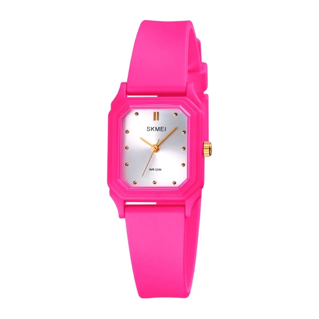 Relógio de Pulso Skmei Feminino Infantil Quadrado Prova Dagua 50 Metros Leve Analógico 1651 Preto Rosa