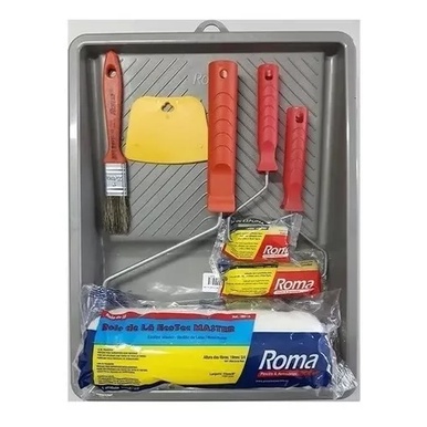 Kit Pintura 7 Peças com Bandeja Rolos Cabos Espátula Trincha