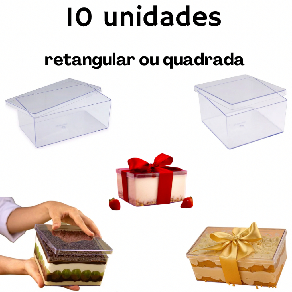 Kit 10 Caixas Acrilicas Para Sobremesa Retangular / Quadrada Com Tampa Cake Box Bluestar Cristal