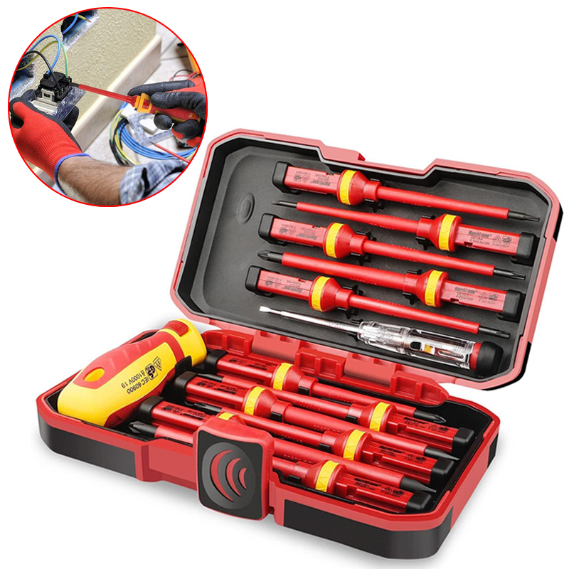 13Pcs 1000V Conjunto De Chaves De Fenda Isoladas Intercambiáveis Com Fendas Magnéticas Pozidriv Torx Bits Kit De Ferramentas De Reparo Para Eletricistas