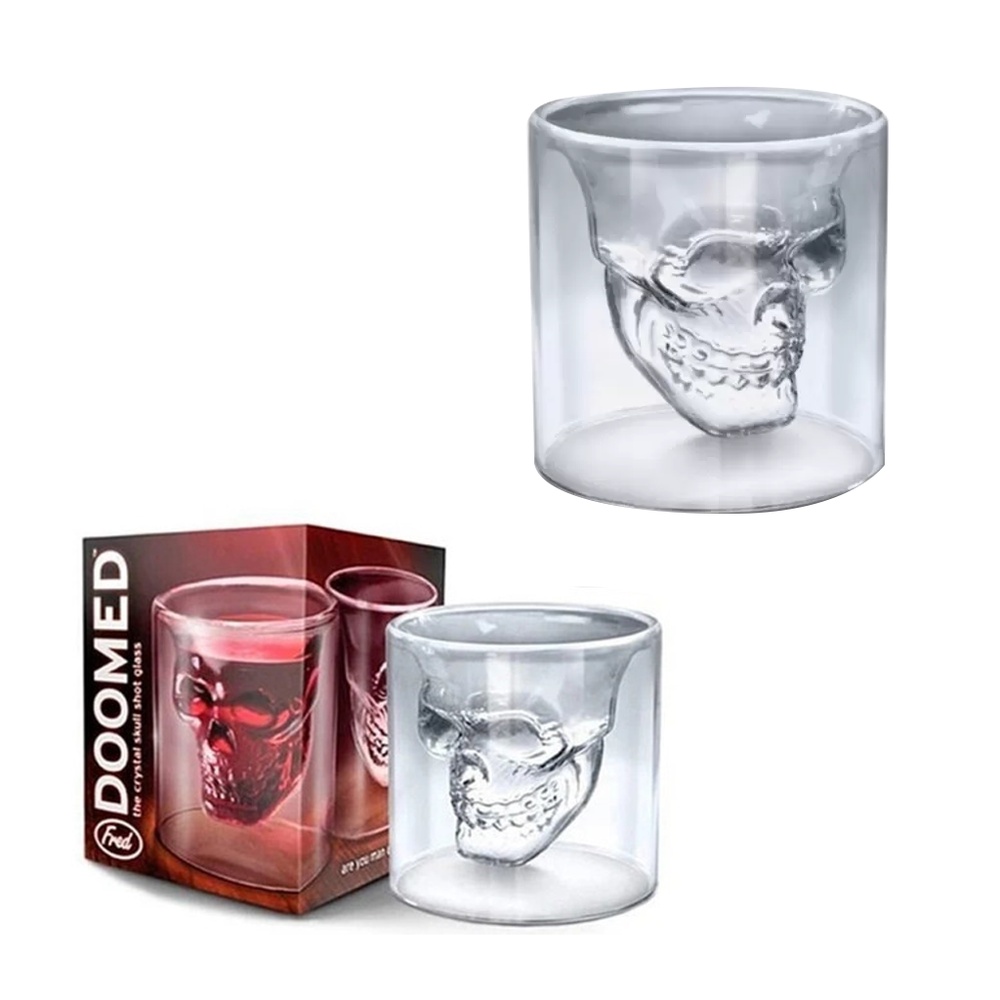 Copo de Vidro Duplo Formato Caveira 100ML - 2 unidades