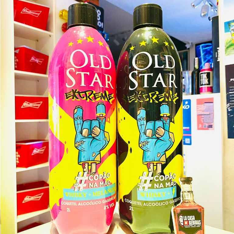 Kit 2 Garrafas 4 Litros Whisky c/ Energético Tradicional e Melancia Old Star Extreme
