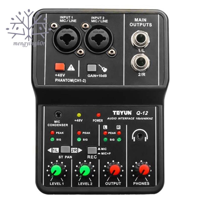 { Venda A Quente } TEYUN Q-12 Placa De Som Mixer Console Interface Do Sistema De Mesa 4 Canais Estéreo Para Computador De 48V Power