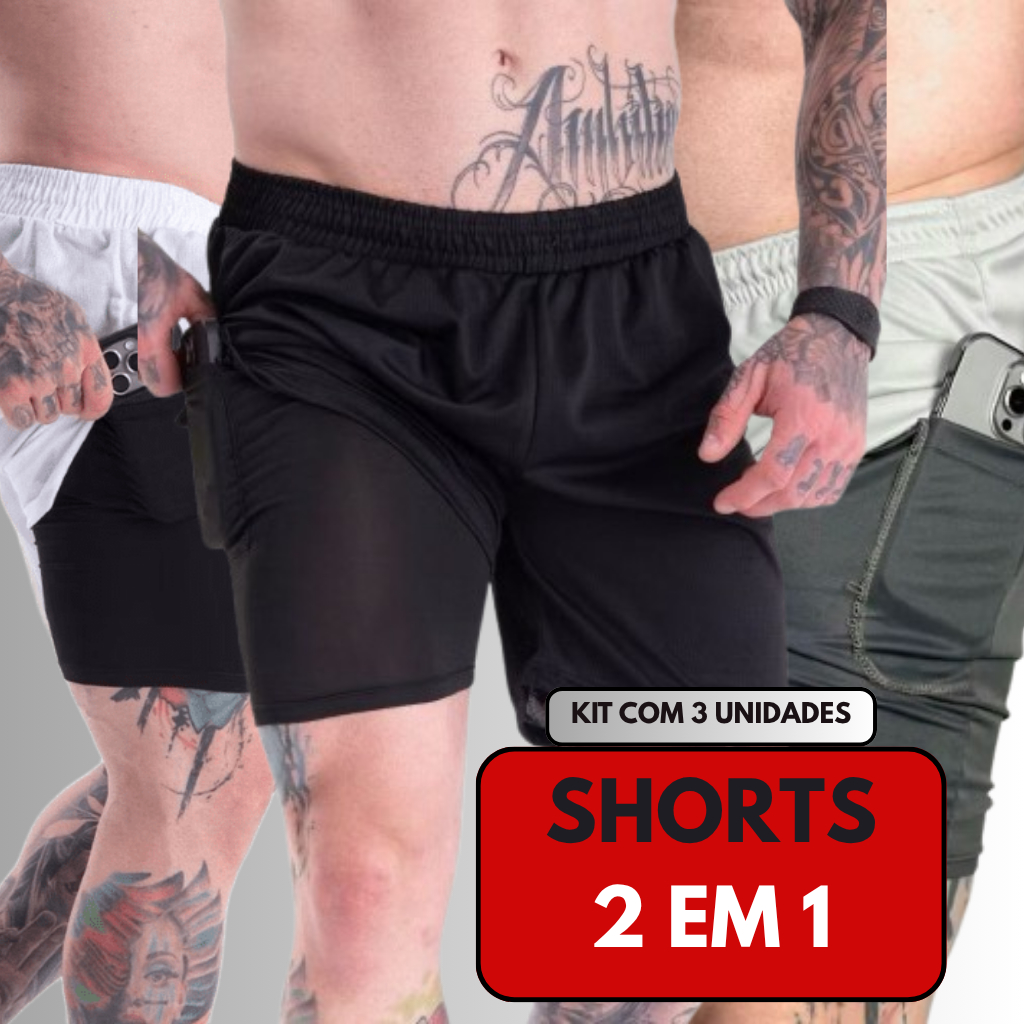 Kit 3 Shorts Fitness 2 Em 1 Bermuda Treino Academia Dry Fit Masculino