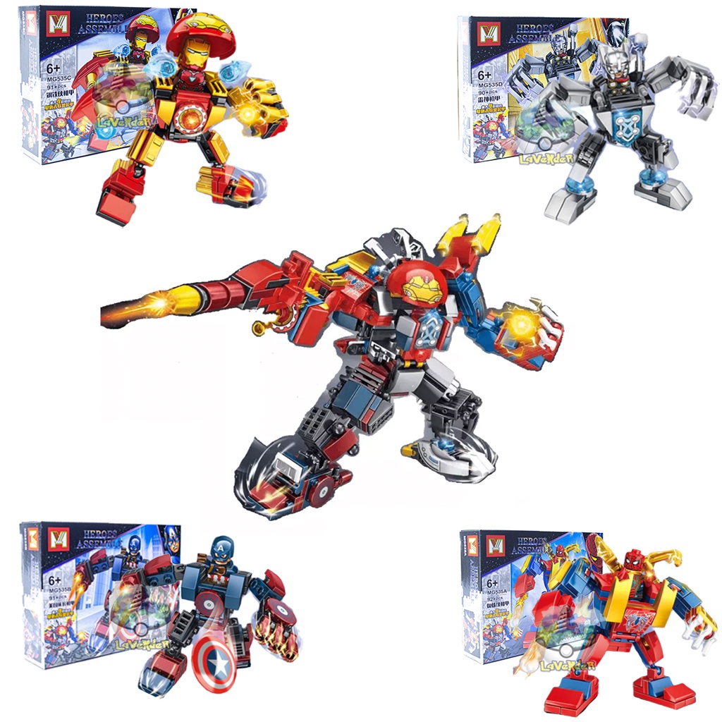 Kit 4 caixa Bonecos Vingadores Marvel com nave Blocos de Monta ate 79 peças compatível a lego