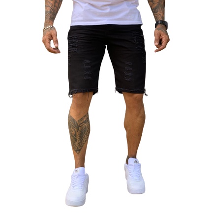 Bermuda Jeans Preta com Detalhes de Tinta Nova Tendência