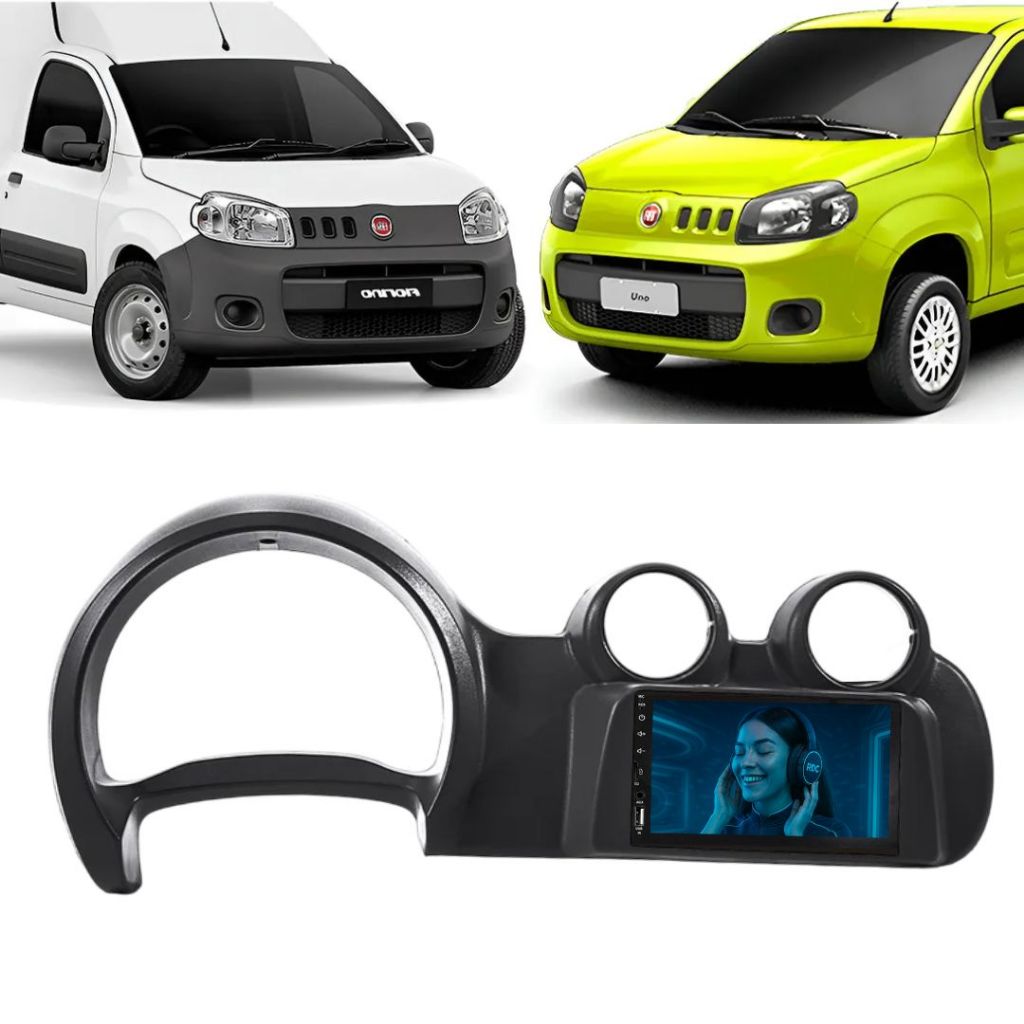 Kit Multimídia Carplay e Android Auto Uno Vivace 2010 a 2015 Fiorino 2014 a 2021 Preto Câm de Ré