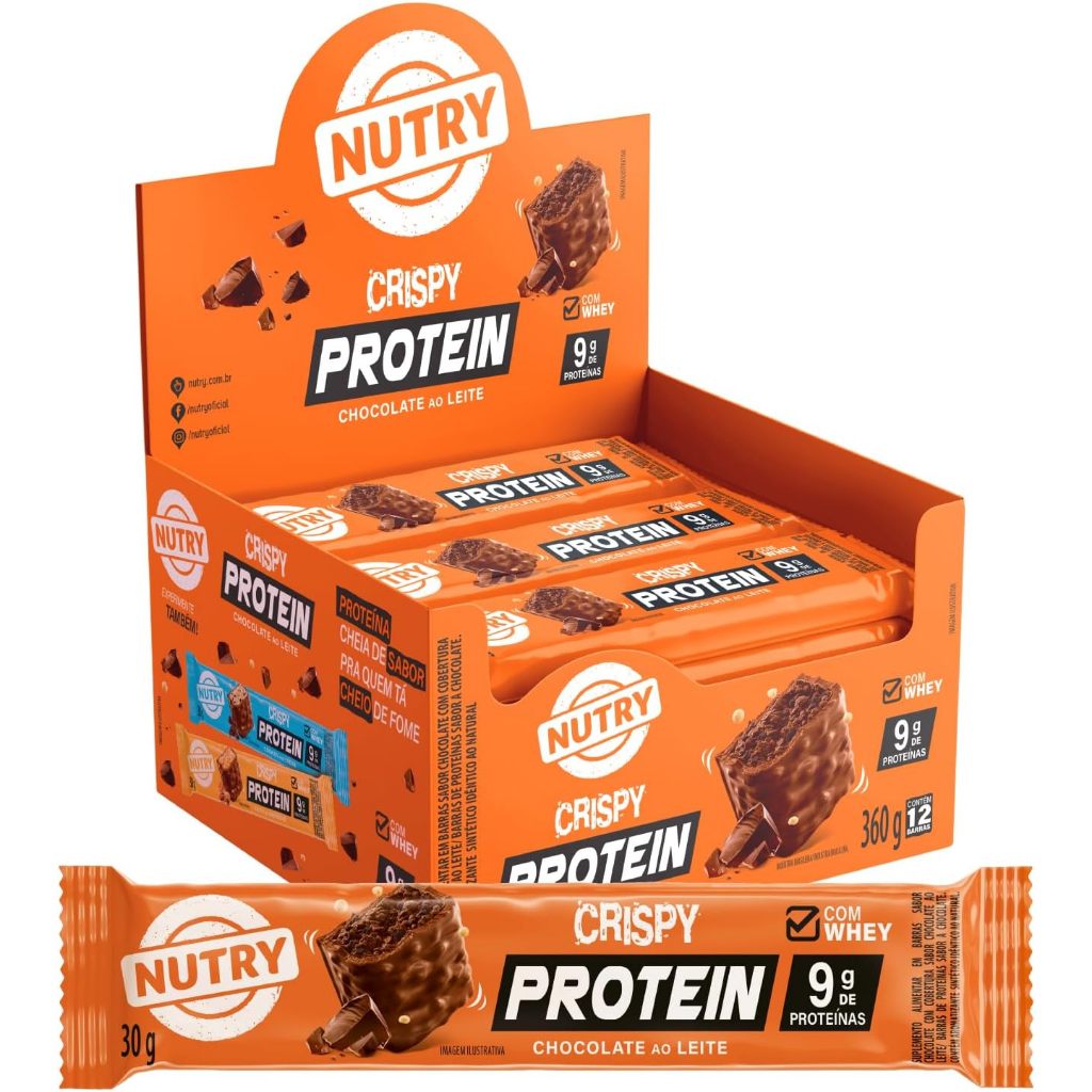 Nutry Barra Proteínas Crispy Chocolate Ao Leite 30G Display Com 12 Unidades Com Whey E 9G De Prot