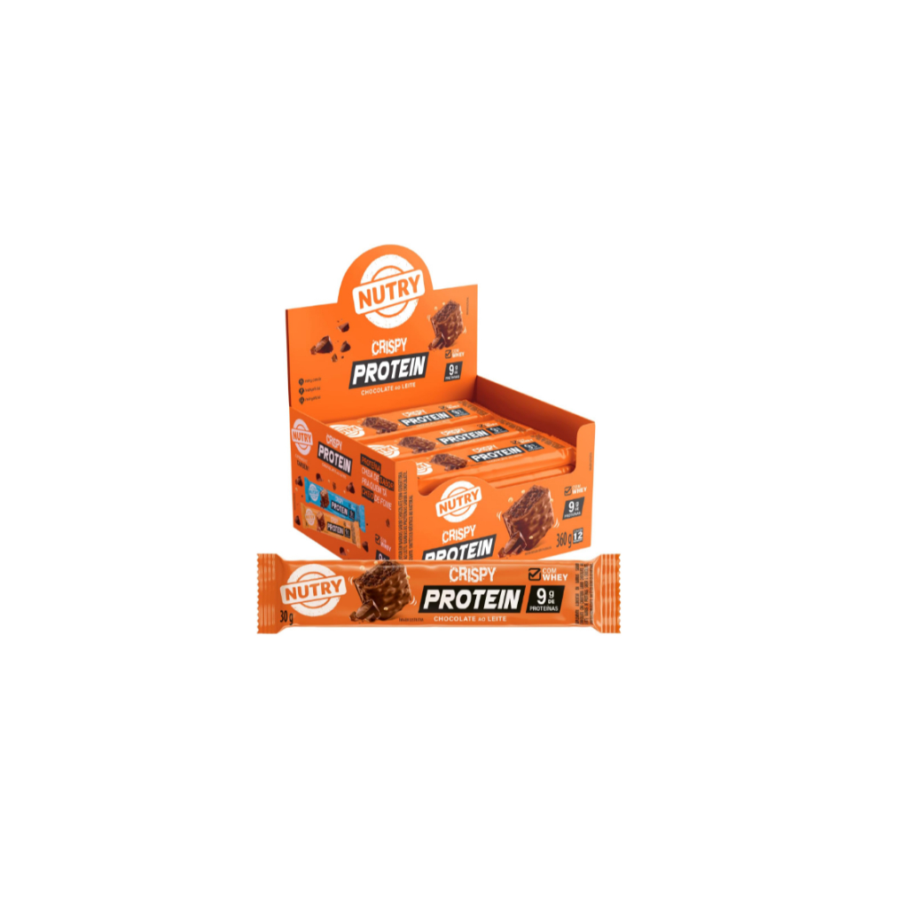 Nutry Barra De Proteínas Crispy Chocolate Ao Leite 30G - Display Com 12 Unidades - Com Whey E 9G De Proteínas