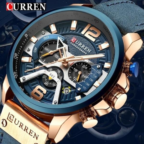 Curren Relógio Analógico Esportivo Masculino Com Pulseira De Couro À Prova D 'Água 8291xc