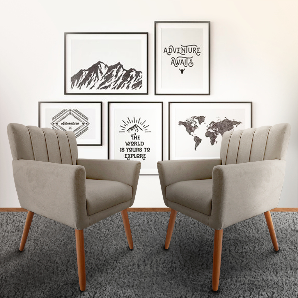 Kit 02 Poltronas Cecilia Suede Pés Palitos Luxo Recepção Escrítorio Sala Quarto Igreja Salão Beleza Visammer