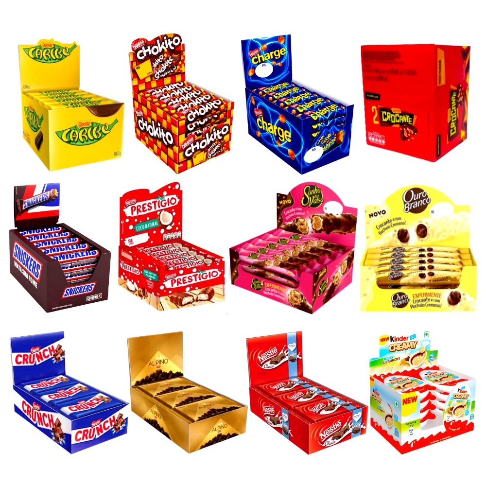 Caixa De Chocolate Caribe Snickers Prestígio Chokito Charge