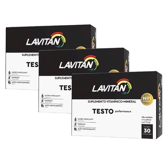 Kit 3cx Lavitan Testo performance c/30 - Suplemento Vitaminico e mineral