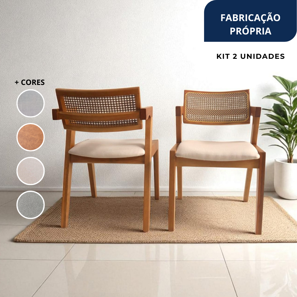 Cadeira Grécia tela rattan conjunto com 2 unidades sala de jantar recepção varanda madeira kit luxo