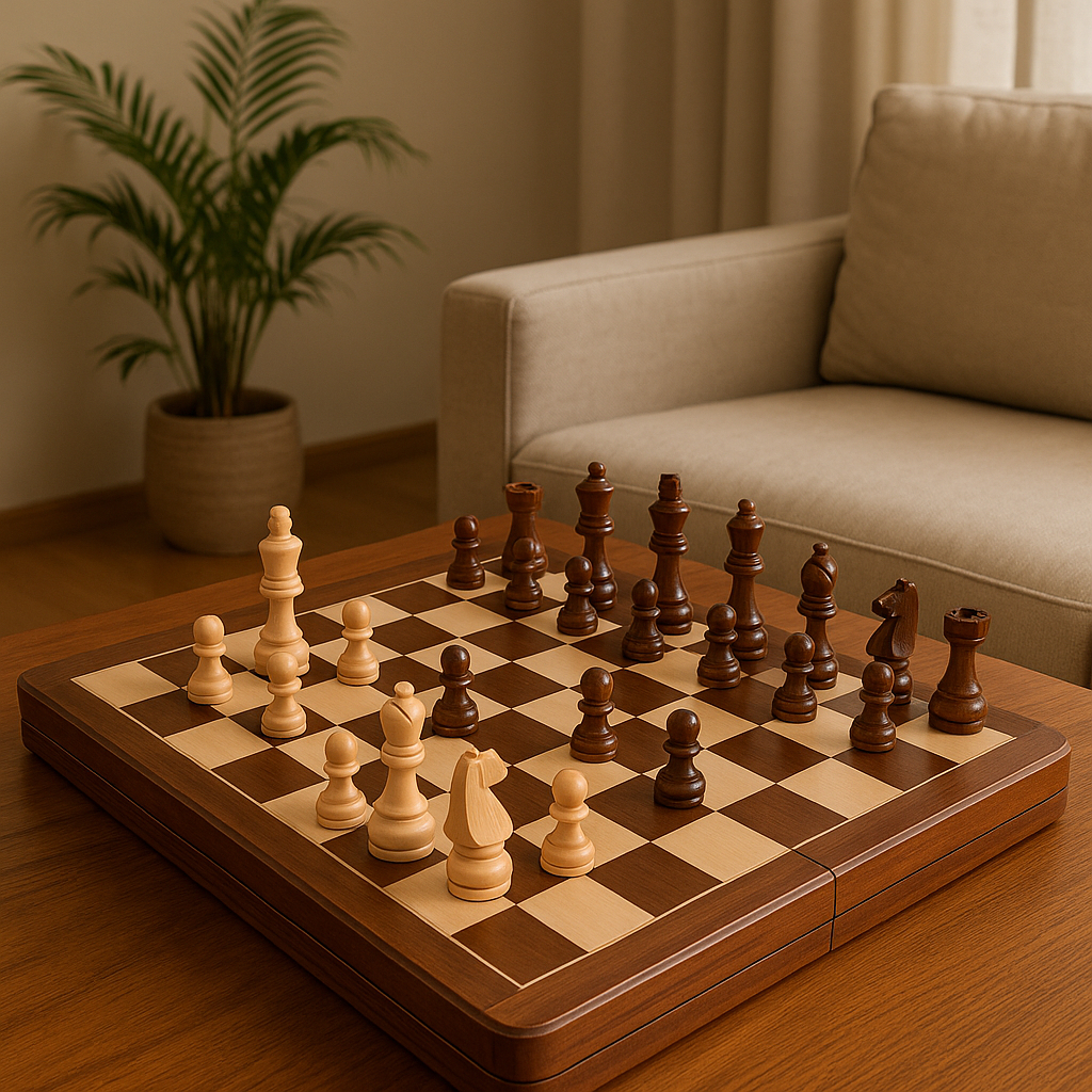 Jogo De Xadrez Dobrável Com Peças E Tabuleiro Em Madeira