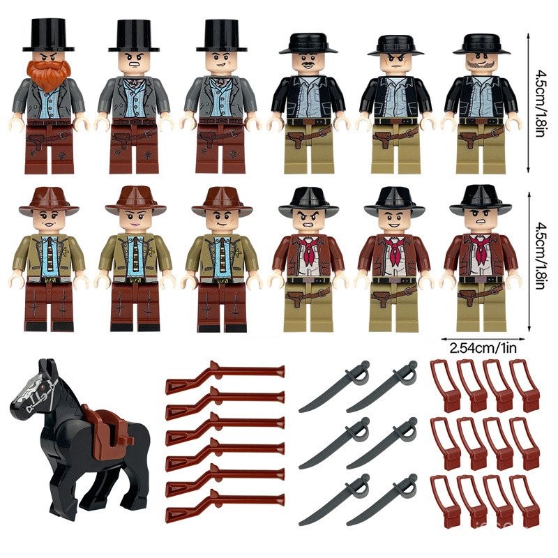 Compatível com Lego pequena pelota ocidental cowboy tourada batalha cavalo de guerra boneca menino menina bloco de construção presente M8AO