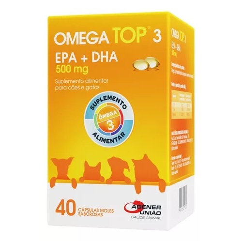 Suplemento Omega top 3 Agener para Cães e Gatos 40 Cápsulas