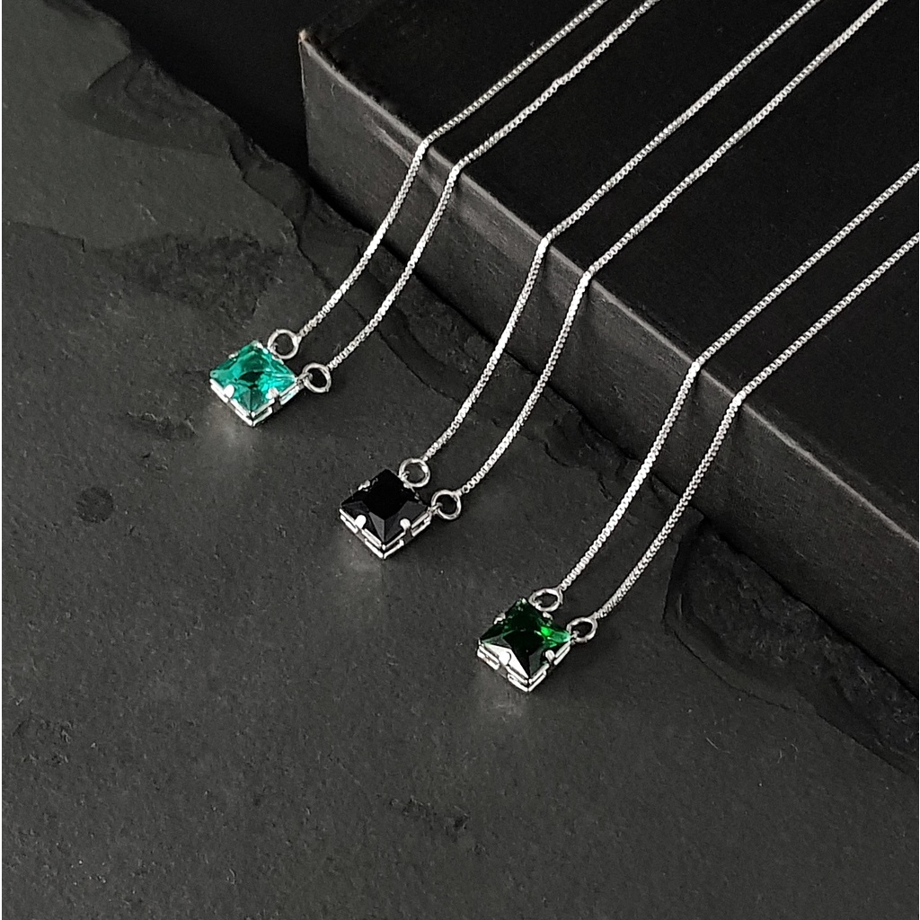 Escapulário Masculino Colar Pedra Preta Verde Banhado a prata 925
