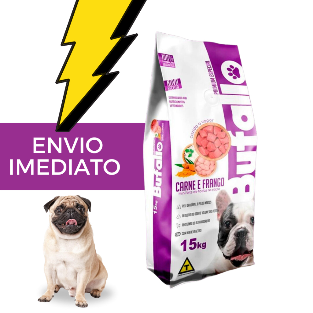 Ração p/Caes Premium Especial Buffalo 15kg sabor carne e Frango + 1 Bifinho - Envio Imediato