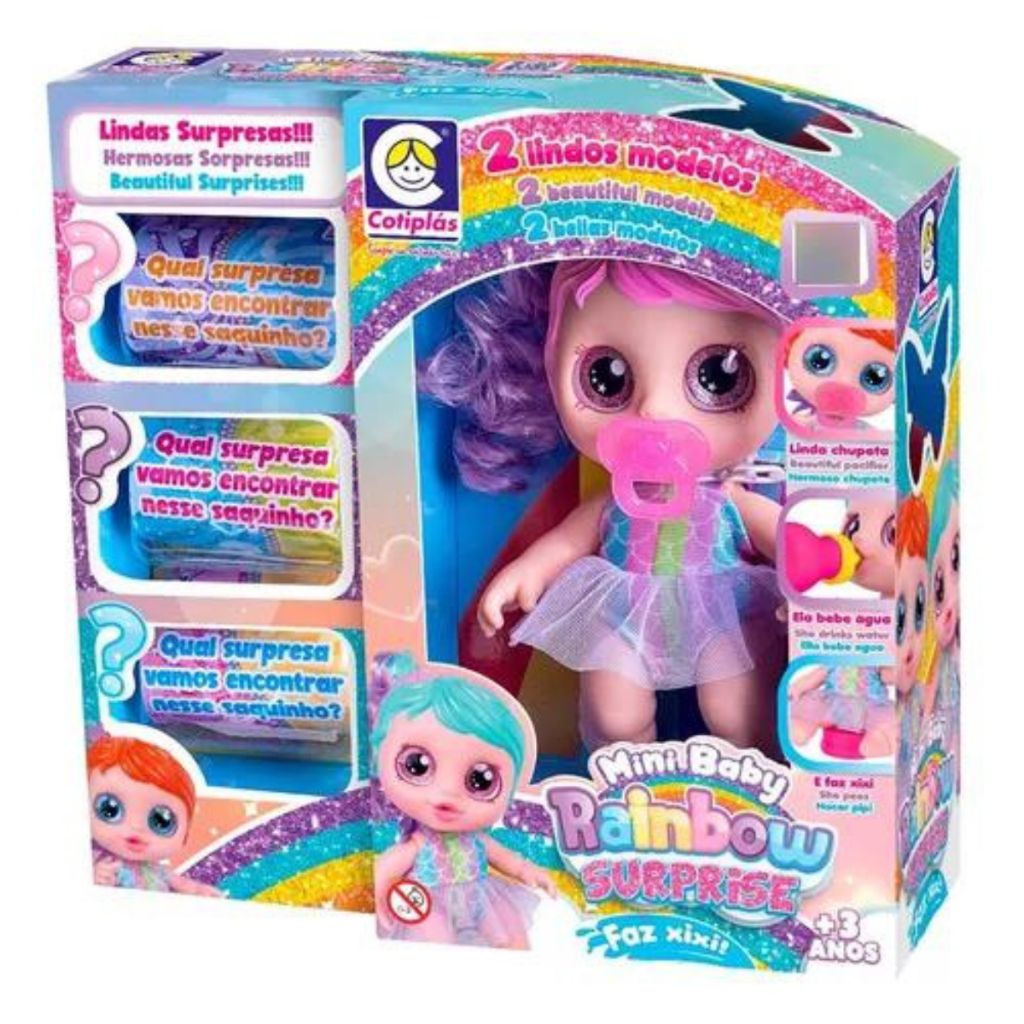 Boneca Rainbow Surprise Cabelo com Mechas Lilás Faz Xixi - Cotiplás 2720