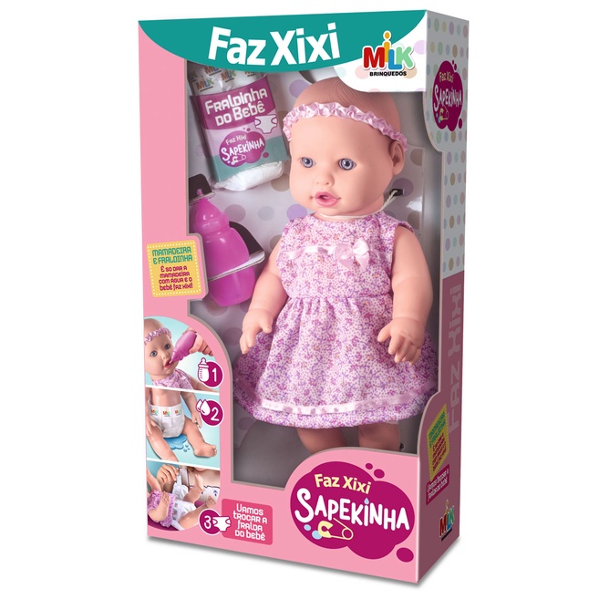 Boneca Faz Xixi De Verdade Mamadeira Fralda Sapekinha Milk