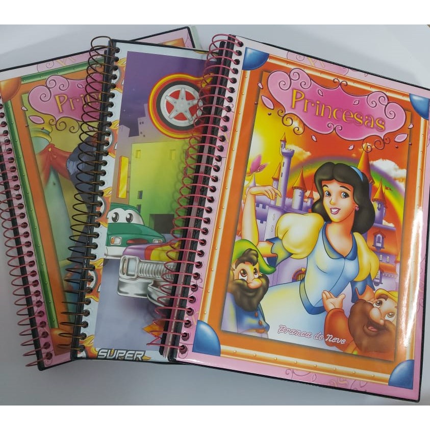 Caderno vintage 200 folhas princesas ou carros capa dura