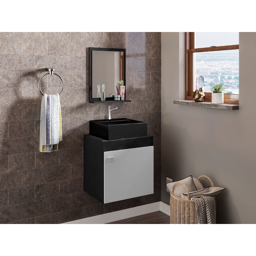 Gabinete Armário para Banheiro com Pia Preta e Espelho Nero