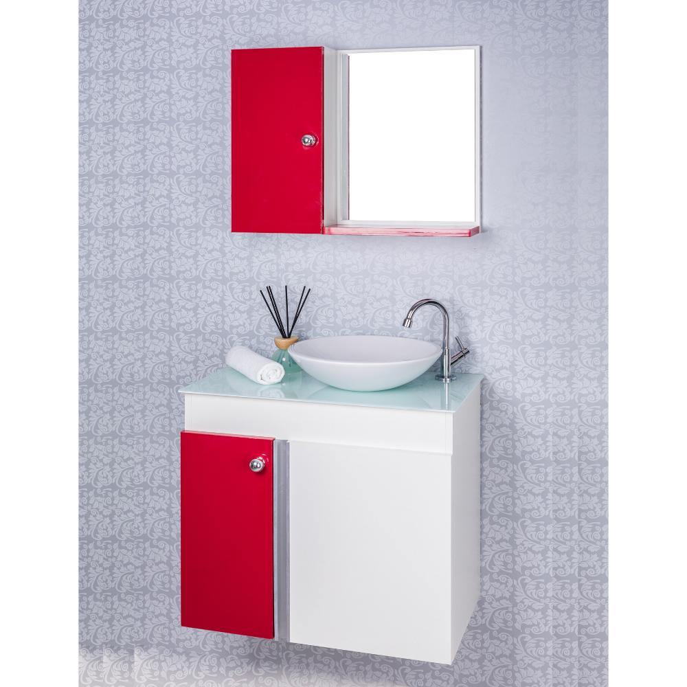 Gabinete Para Banheiro Branco E Vermelho Com Cuba Branca E Armario Com Espelho Modelo Aquarius Delta