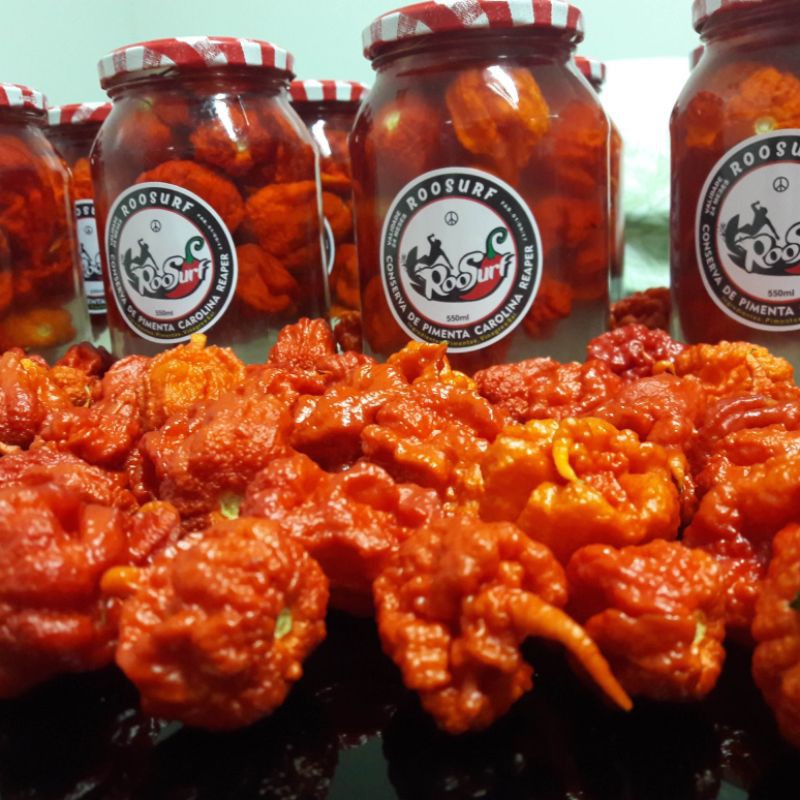 Conserva de pimenta Carolina reaper 550 ml curtida no azeite , a pimenta mais forte do mundo